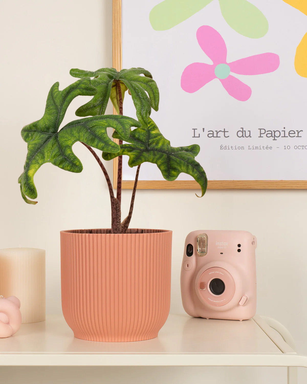 Jacklyn Elephant Ear, botanically known as Alocasia Jacklyn, is a showstopper! Its deeply lobed, arrow-shaped leaves showcase rich shades of green, while creamy-green petioles streaked with purple make it stunning from every angle. Young, it’s perfect for desks or tabletops; grown, it becomes a majestic floor plant, bringing tropical vibes wherever it lives.