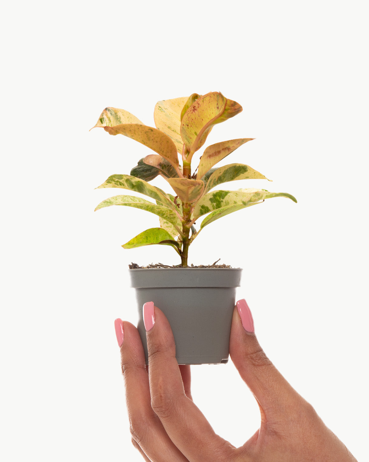 It exhibits moderate growth, which means you can enjoy its beauty without the need for constant attention. To ensure your Lil' Elastic Rubber Plant thrives, provide it with moderate to bright indirect light, allowing the soil to dry slightly between waterings. These conditions help maintain its stunning appearance and overall health. Whether you're aiming to elevate the elegance of your space or simply looking for a low-maintenance plant companion, Ficus Elastica Schrijveriana fits the bill.
