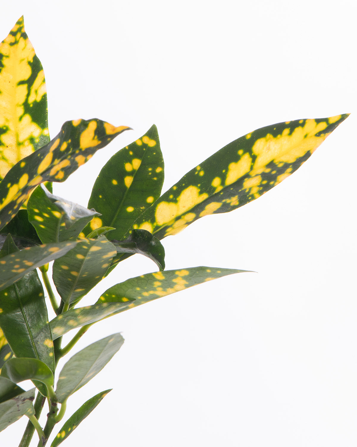Welcome to the enchanting world of the Lil' Golden Dust Croton, scientifically known as Codiaeum Aucubaefolia. This petite beauty features striking variegated leaves that bring a touch of sunshine to any indoor space. The Lil' Golden Dust Croton is an excellent choice for plant enthusiasts of all levels. Its vibrant golden and green foliage adds a burst of colour to your home. Place it in an area with bright, indirect sunlight to showcase its stunning leaf patterns. Caring for the Lil' Golden Dust Croton is straightforward. Maintain consistent humidity around the plant to keep its foliage looking its best. Water it when the top inch of soil feels dry, ensuring that the pot has proper drainage.