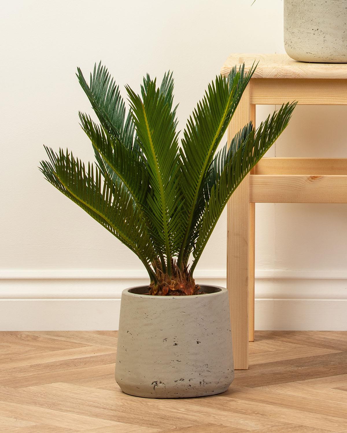Our Palm houseplant bundle is great for people with a little less room in their homes. These smaller indoor palm trees are low-maintenance and pet-friendly (except the cycas). This leafy trio includes the Ponytail Palm, Footstool Palm, and Cycas Palm. All three love a regular mist, but only the Footstool Palm needs regular watering. The other two are far more laid back about their drinking habits and only need it when their soil is dry.