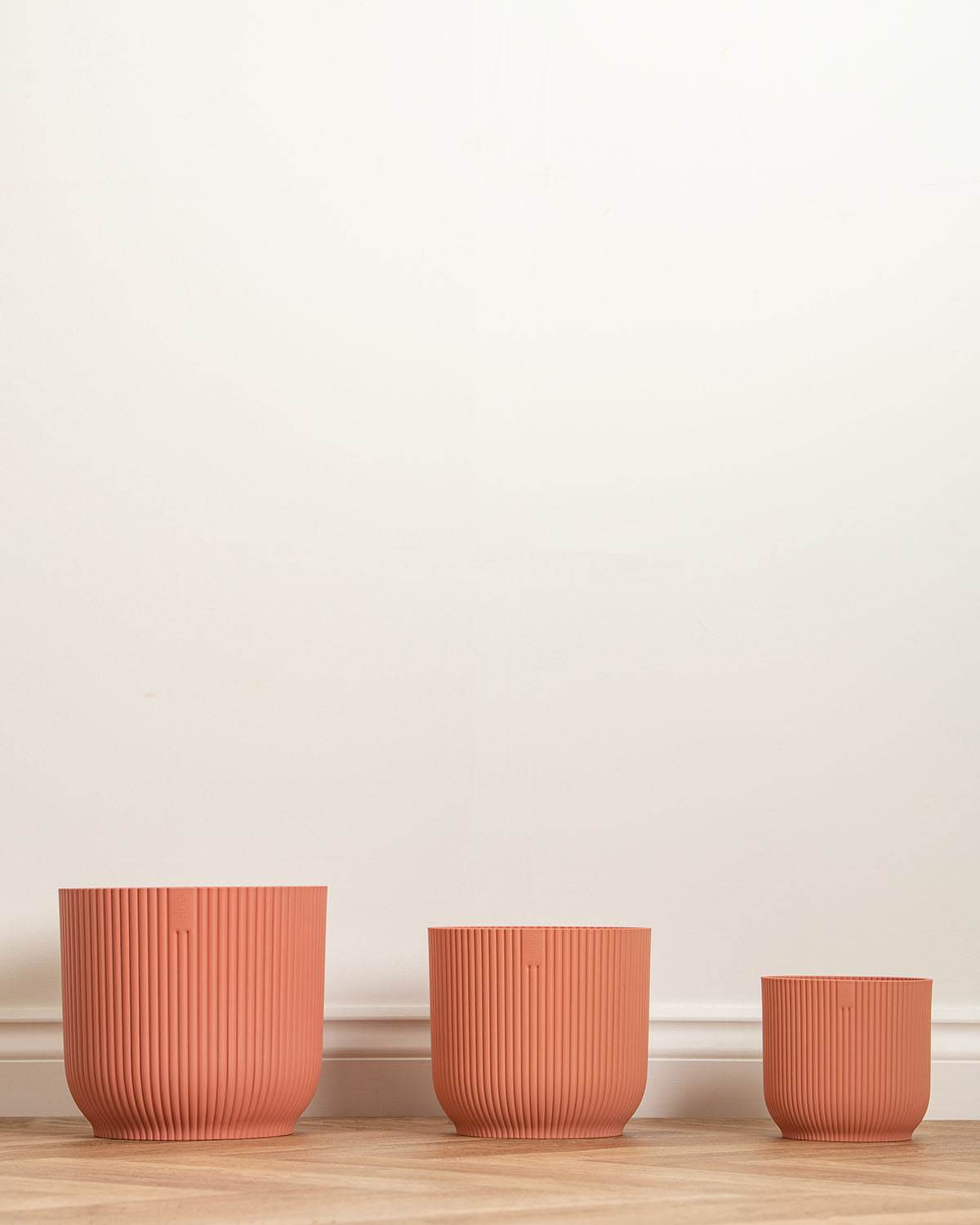 Available in multiple sizes, the Pink Ash Recycled Plant Pot accommodates the varied selection of indoor plants favored by plant aficionados. Fashioned from entirely recycled plastic, this pot's rounded edges and textured surface blend seamlessly with any interior design. These classic indoor plant pots revitalize the aesthetic of your houseplants.