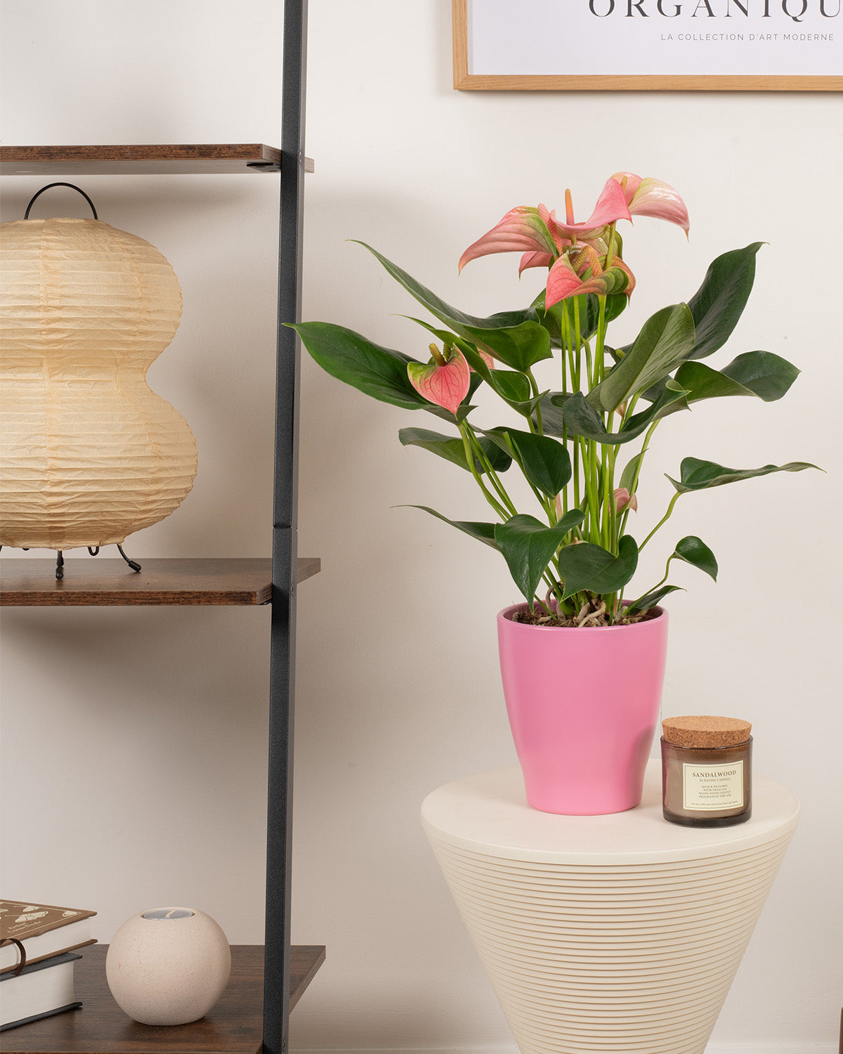 The Pink Flamingo Plant, scientifically known as Anthurium andraeanum Pink, is a tropical gem that adds a burst of vibrant colour to any indoor garden. With its distinctive pink spathes resembling the elegance of flamingo feathers, it's a striking choice for plant enthusiasts. This Anthurium variety is renowned for its exotic appearance, featuring glossy, heart-shaped leaves and showy, pink blooms that capture the essence of the tropics. The Pink Flamingo Plant thrives in bright, indirect light, making it perfect for spaces with ample natural illumination. However, it can also adapt to moderate light conditions.