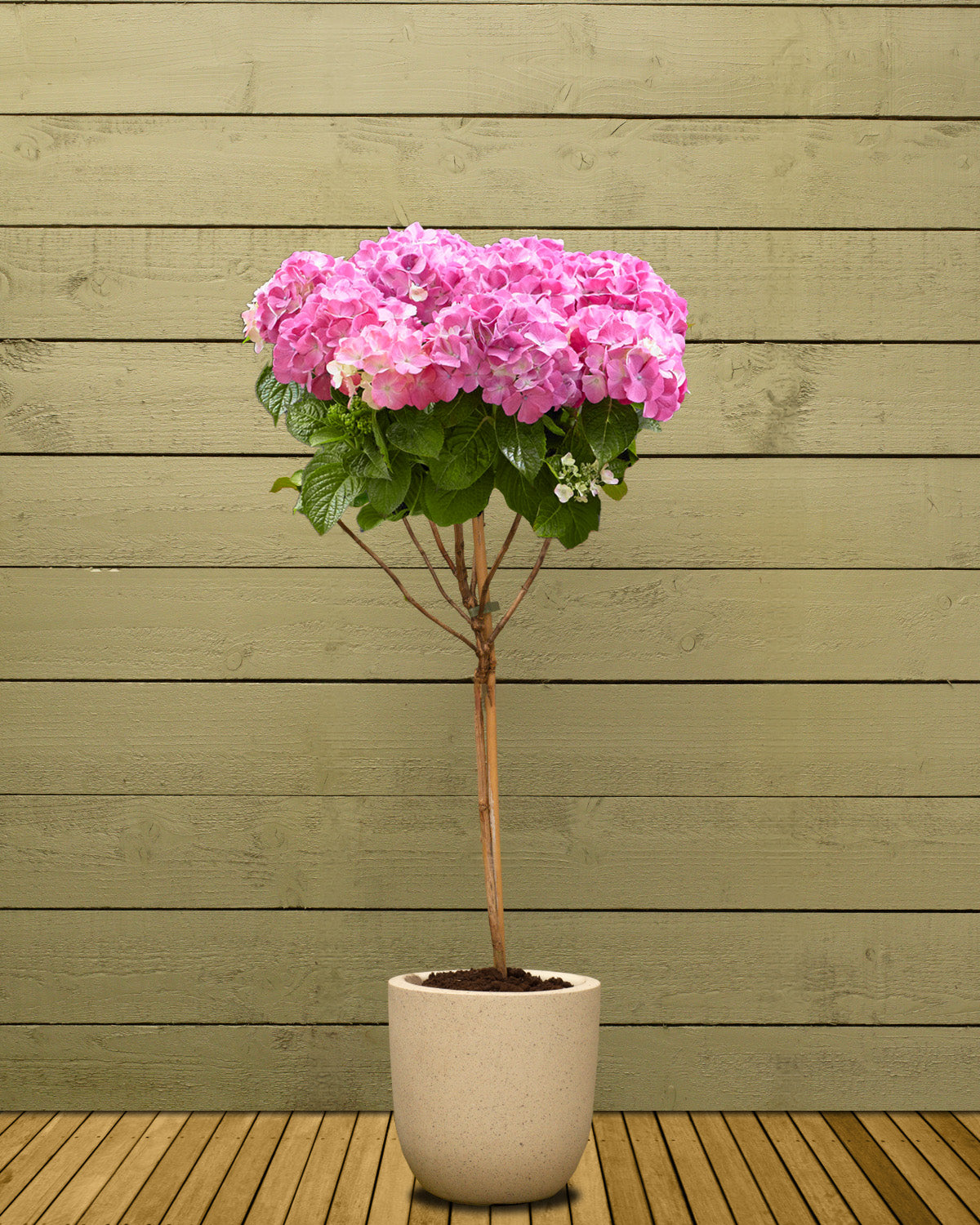 The Pink Hydrangea Patio Tree, also called Hydrangea macrophylla Pink, adds a beautiful touch to any outdoor area. Its stunning pink flowers and graceful shape bring elegance and charm to gardens, patios, and landscapes.