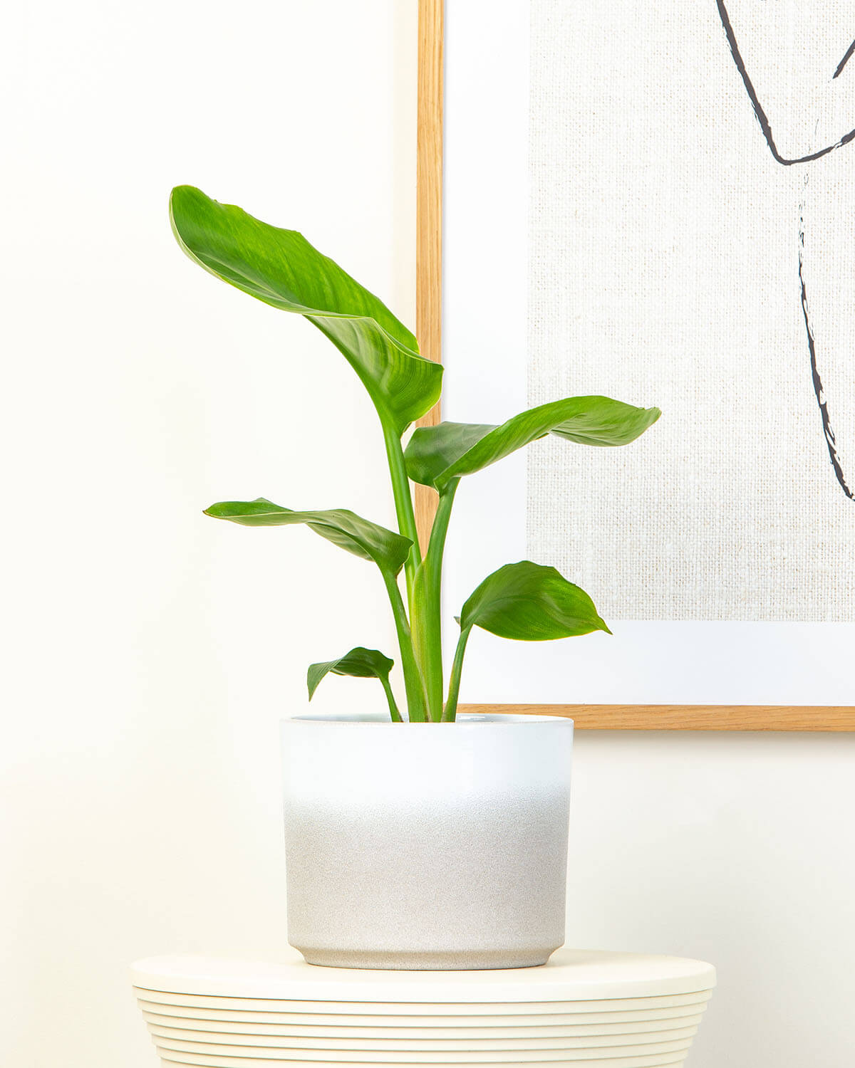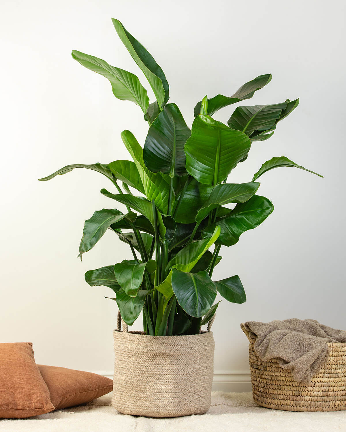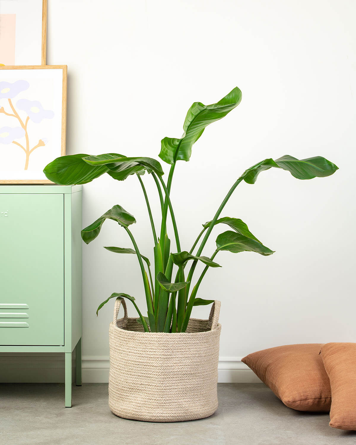 This South African native can never have enough sun or humidity. So keep it in bright, indirect sunlight in a warm (21-28°C, min 13°C) and humid environment. During summer you can even pop your Strelitzia plant outside for some extra vitamin D! This tall, indoor plant is a fast grower and can get quite big (max 3 m). Be sure to rotate it to encourage even growth. Don't panic if your Bird of Paradise has some split leaves, this is normal.