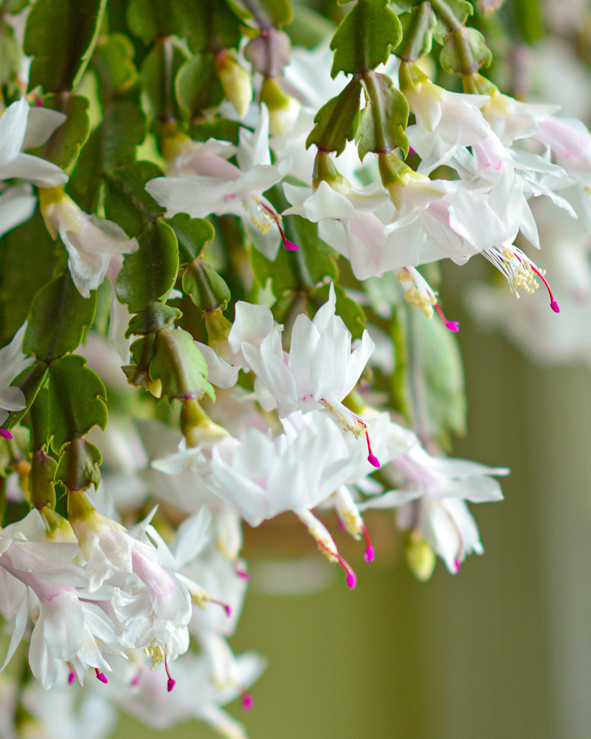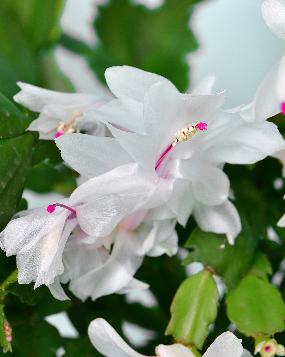 Caring for your White Christmas Cactus is as simple as it is rewarding. Plant it in well-draining soil and water only when the top inch of soil feels dry. This Schlumbergera thrives in moderate humidity, making it a welcome addition to living rooms, bedrooms, or even bathrooms. During its blooming season, it will appreciate a bit of extra care, such as a cooler spot and reduced watering to encourage more flowers.